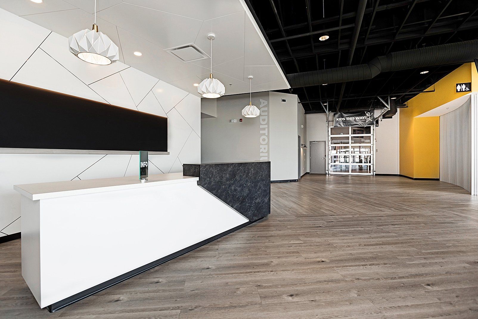 Originally the church occupied 10,000 sf of the 25,000 sf existing commercial building. The entire additional area was renovated and a vaulted roof was added over the new sanctuary creating the primary architectural expression of the church. Part of the architectural response was to maximize visual transparency at the lobby facing the street, while minimizing structural