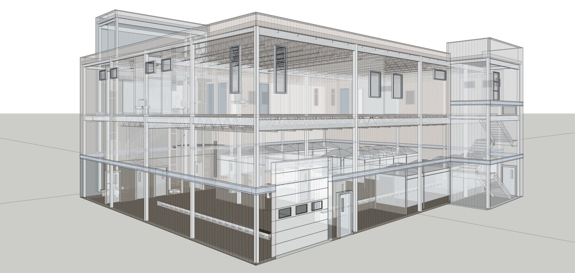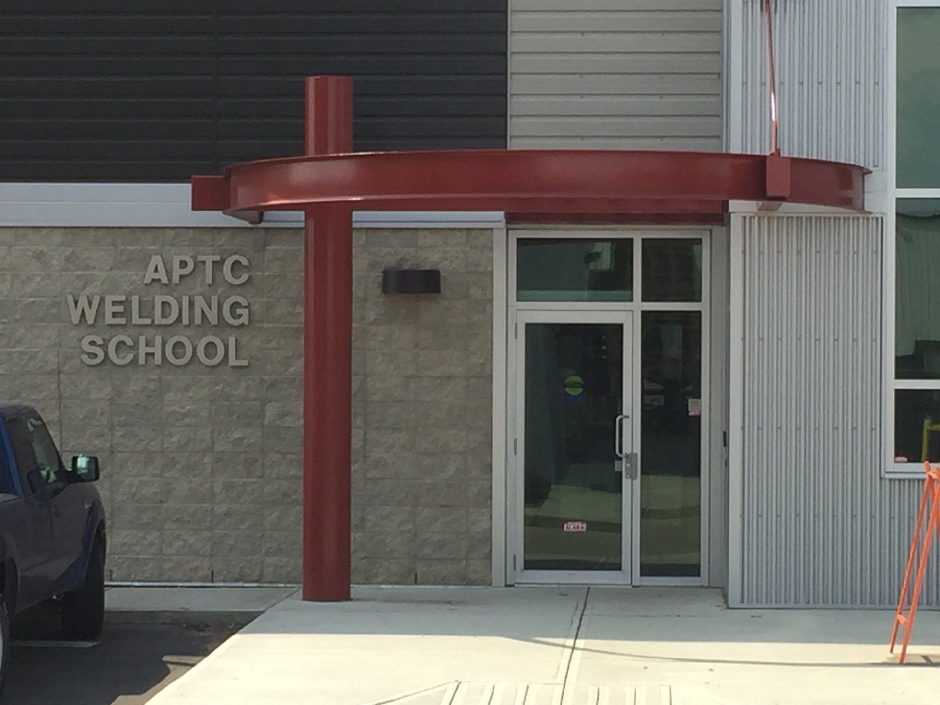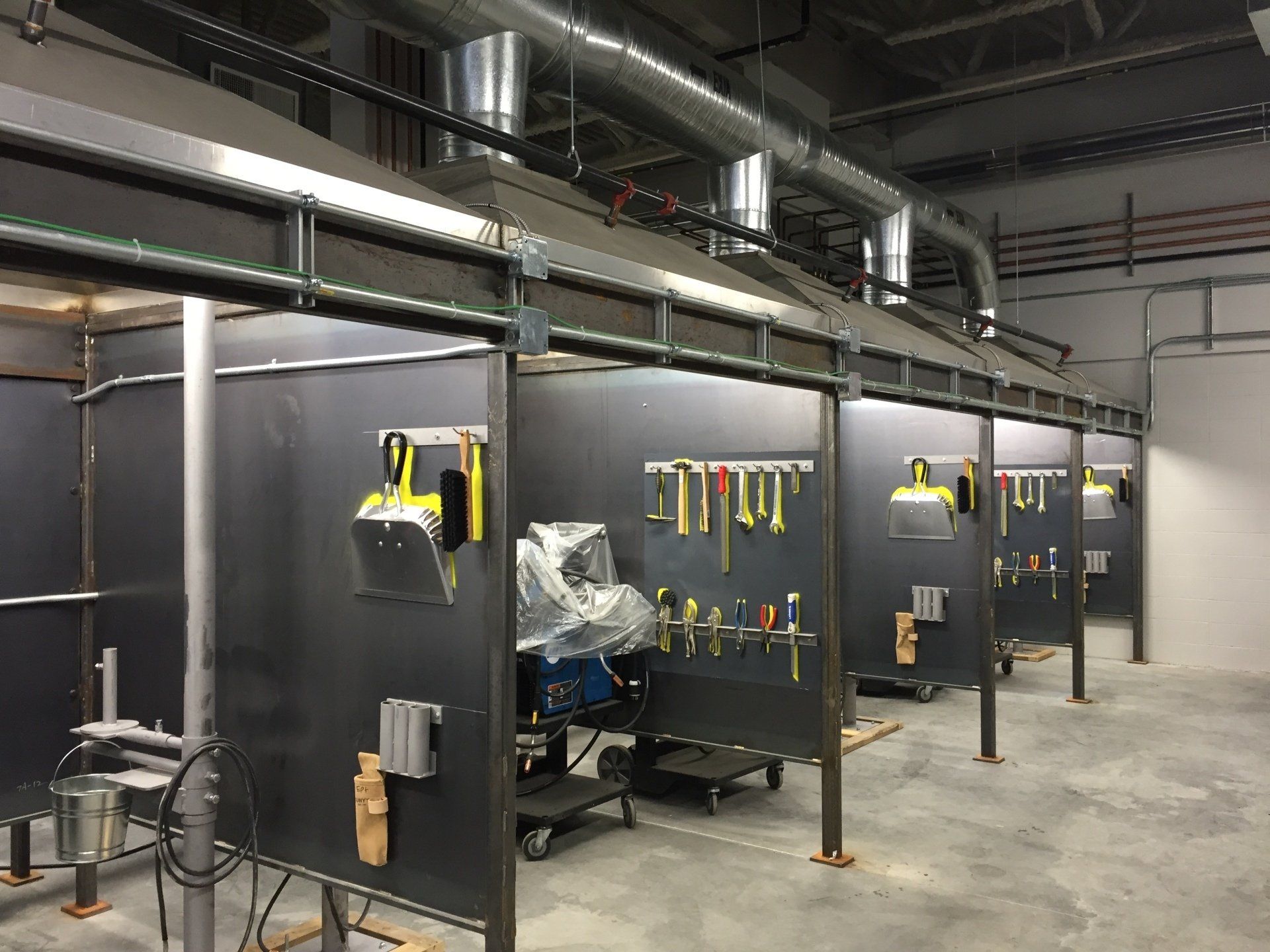 This is the latest of a number of projects completed over the years for this Client on their west Edmonton campus. Given that the Alberta Pipe Trades College (designed in 2007-8) has already reached full capacity, there was a need to create an adjacent stand-alone building dedicated specifically to welding training for Alberta’s industrial economy. The 6000 sf ground floor includes 24 welding training booths and supporting shop space with the upper level housing 3 classrooms, instructor office bullpen, and a student lunch / gathering area. The design aesthetic is intended to mesh with the themes established in the original administration complex, the College building and other facilities on the campus.