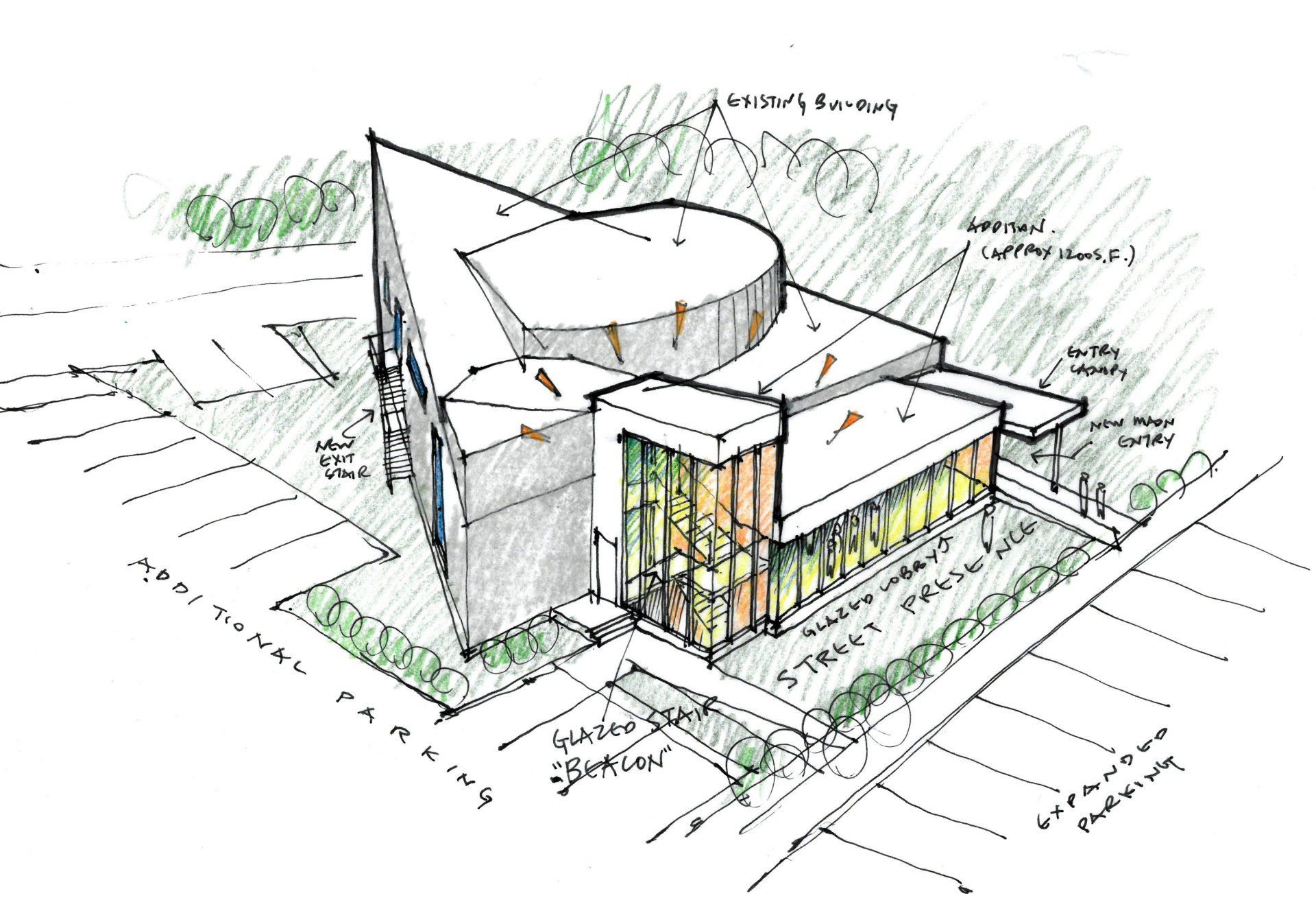 Hope City Terwillegar entails the renovation and addition to an existing church building previously owned and used by a different Christian faith community and tradition. The existing structure, a unique one with a theologically charged design, was experiencing various functional and maintenance challenges, but the Hope City leadership made an early decision to save the structure, and to adapt it to their immediate needs as well as to their longer-term vision for the overall site. The project therefore became a case study in how a church building of one tradition, worship style, and character, is passed on and converted to meet the needs of a different tradition, while bearing witness to the unity of the Christian faith at the same time. As such, the design seeks to strike a balance between accommodating drastically different functional needs and overcoming structural constraints while acknowledging, expressing, and respecting some of the more powerful symbolic aspects of the existing church building.