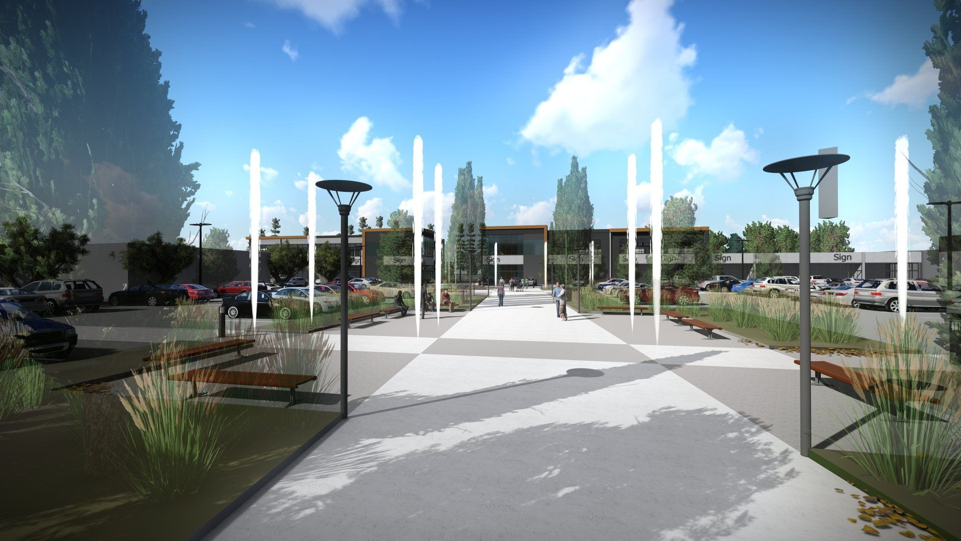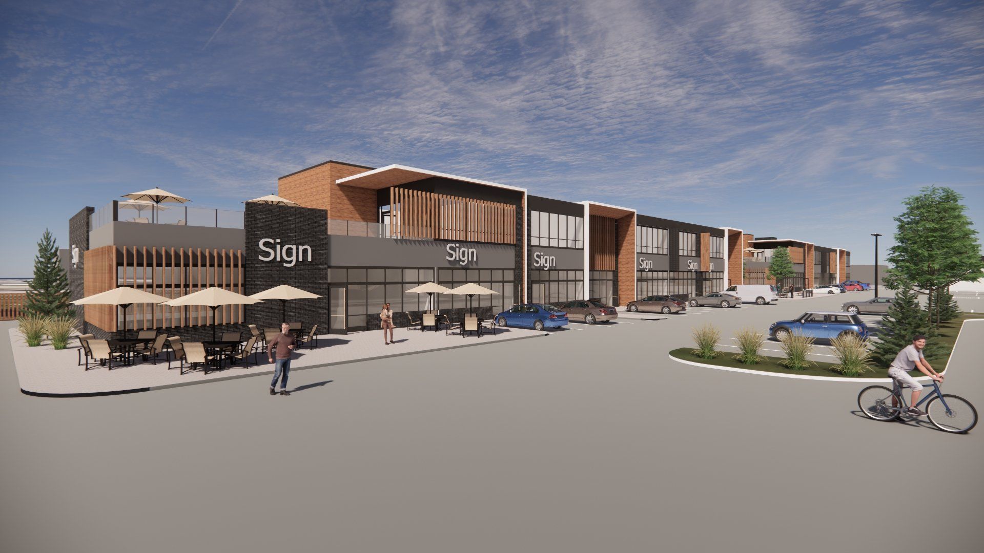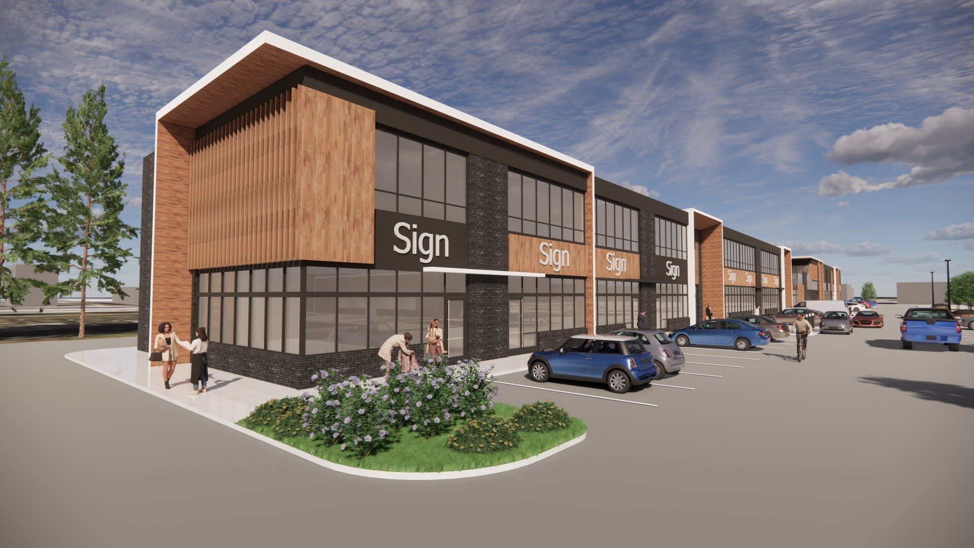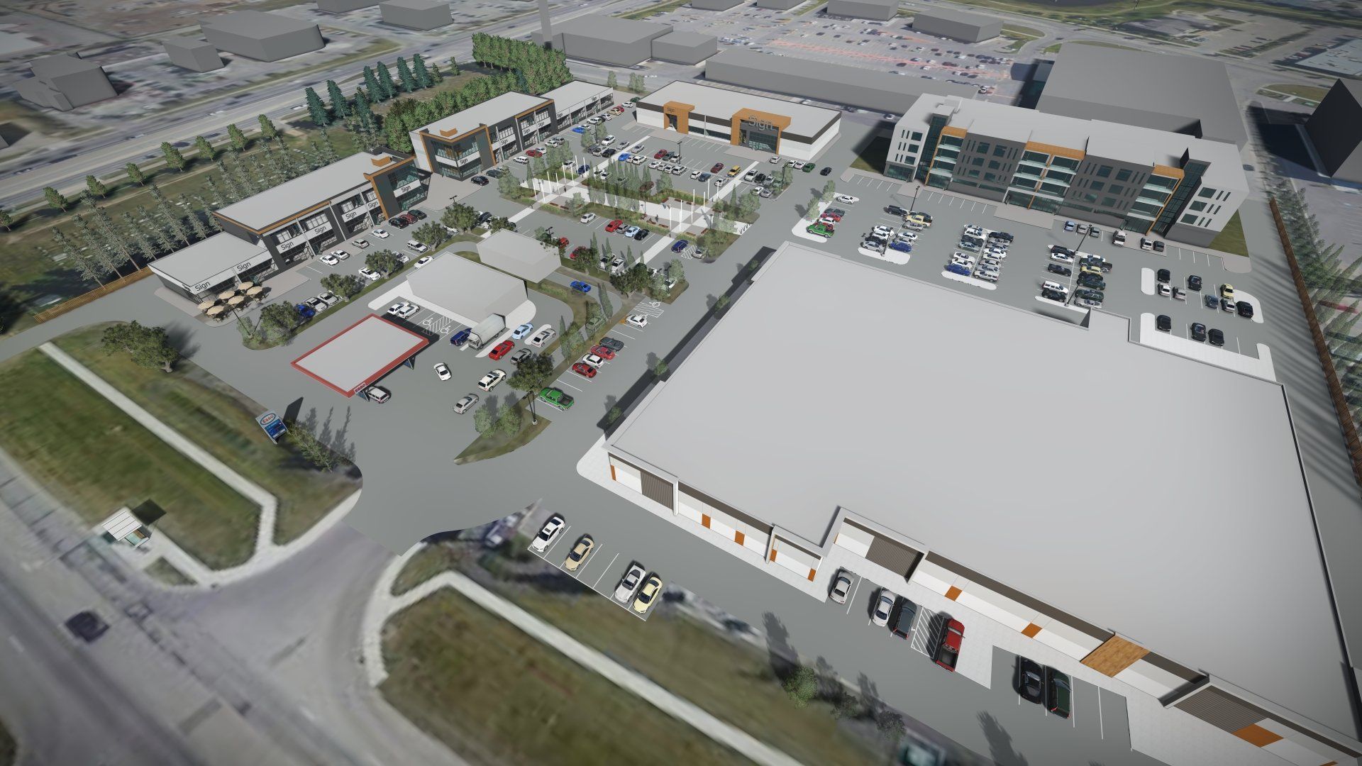 The plan’s development occurred quickly as we responded to rapidly evolving market needs, projections, and lease arrangements, arriving at a phased approach that allows flexibility for future development. The first phase, currently in design development, entails a pair of 2-storey buildings and a gas station lease site, which will establish an overall design character and “personality” to be carried into subsequent buildings.
