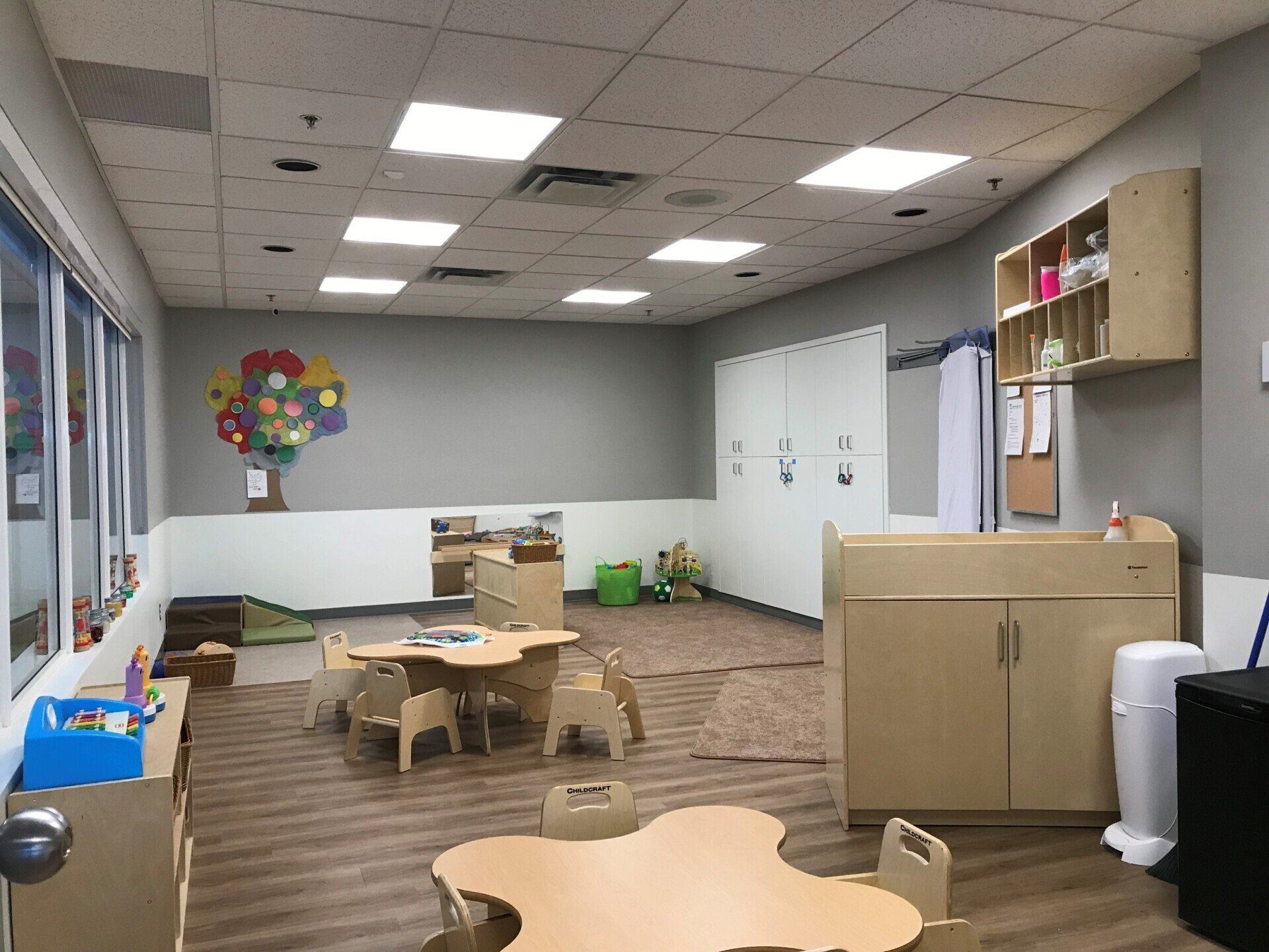 West Meadows Baptist Church sought an opportunity to partner with a private daycare operator to provide additional much-needed community service. The renovated portions of the Children’s Ministry wing functions in a shared-use capacity, also serving for nursery, toddler and child care programming during Sunday services. The crawlspace configuration of the existing classroom pods allowed for a cost-effective alteration to provide the required washroom cores for the daycare spaces.